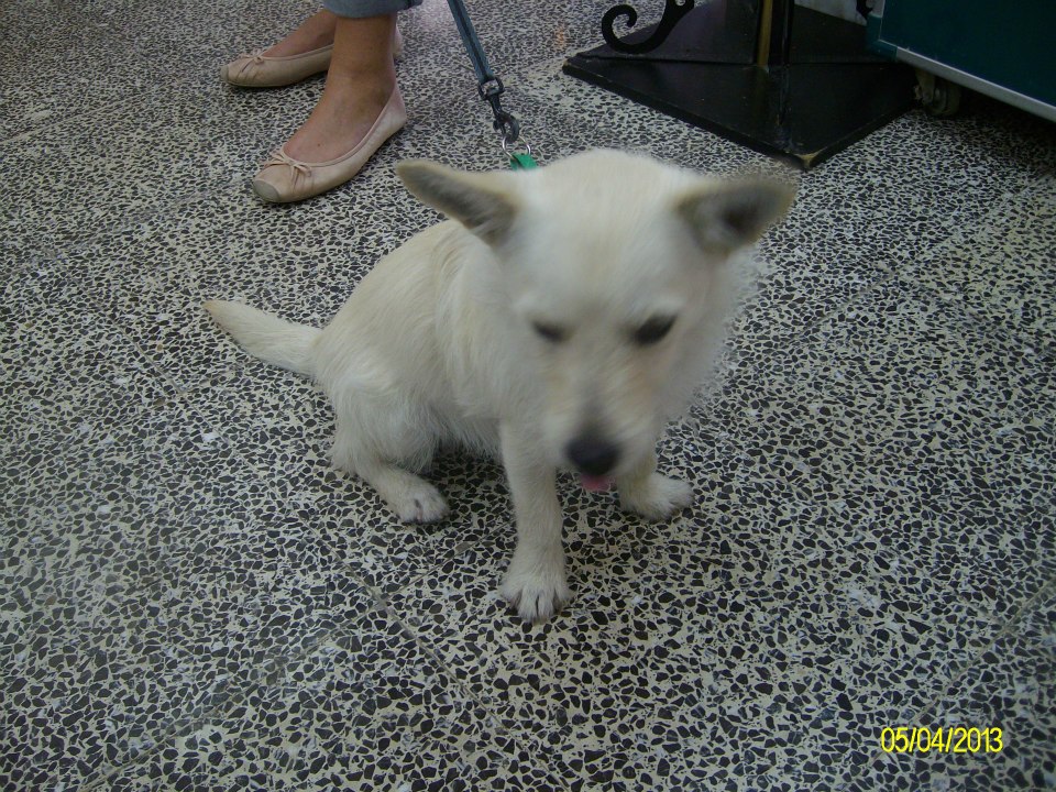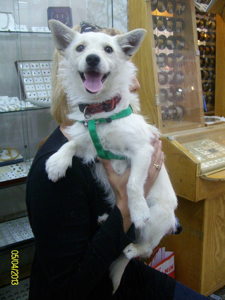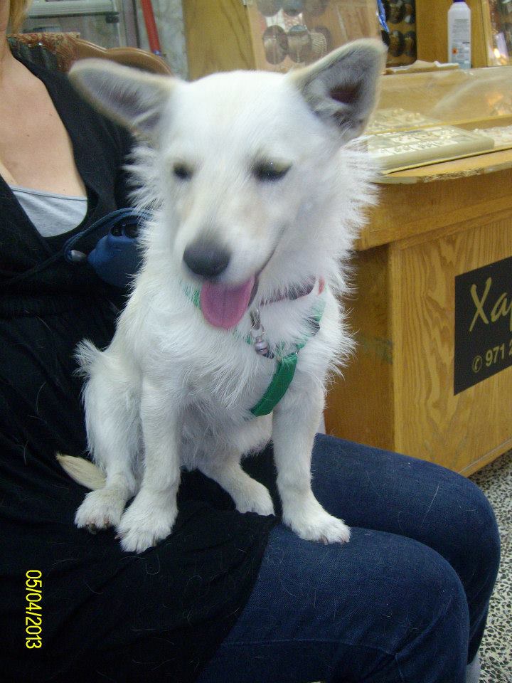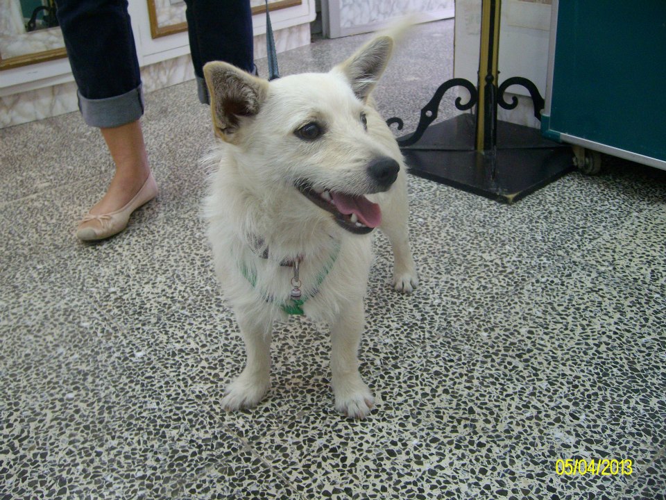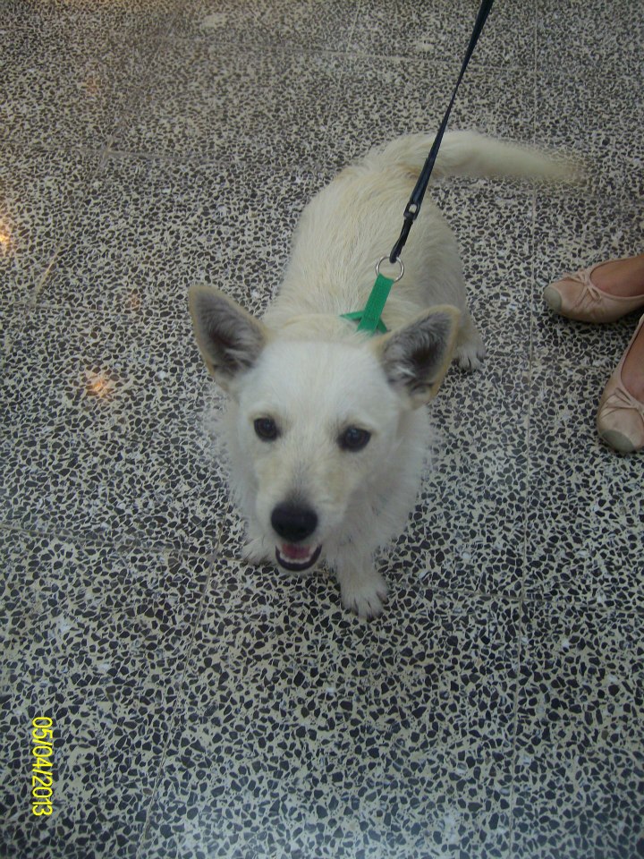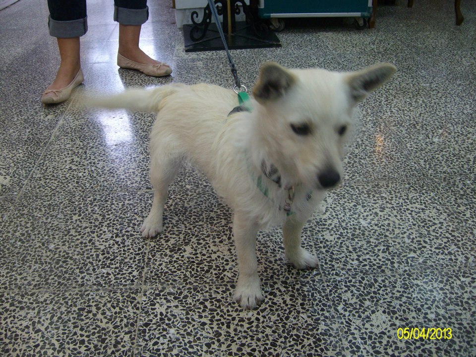 El día 26 de abril, cuando fuimos a visitar la perrera, Renée decidió llevarse con ella este perrito flacucho y simpático.