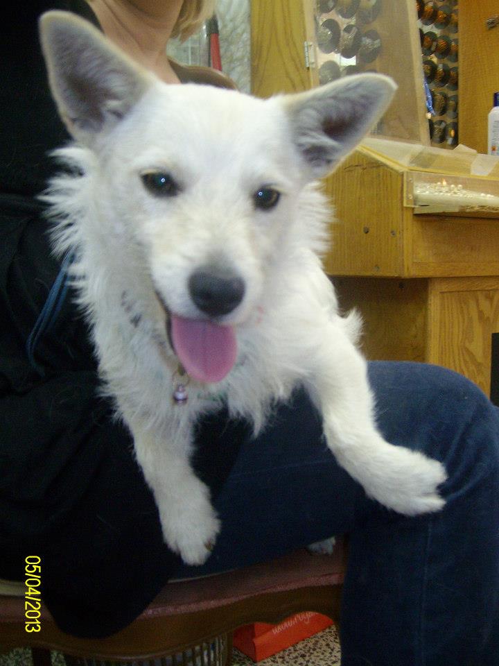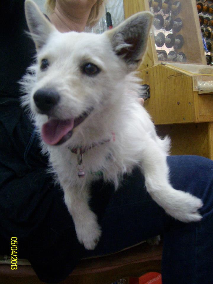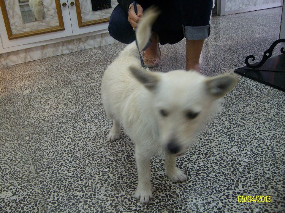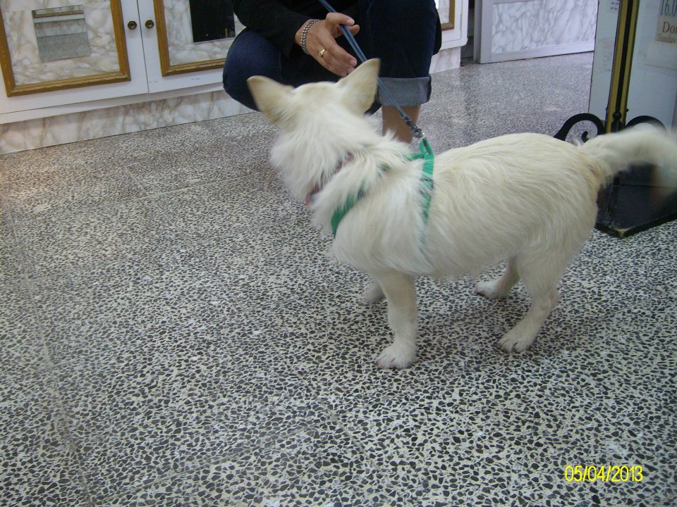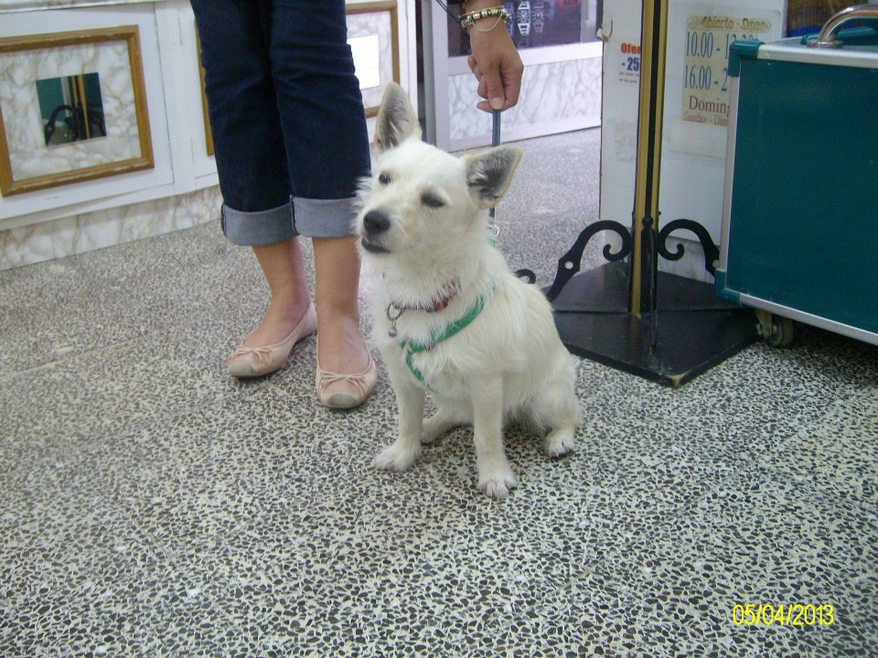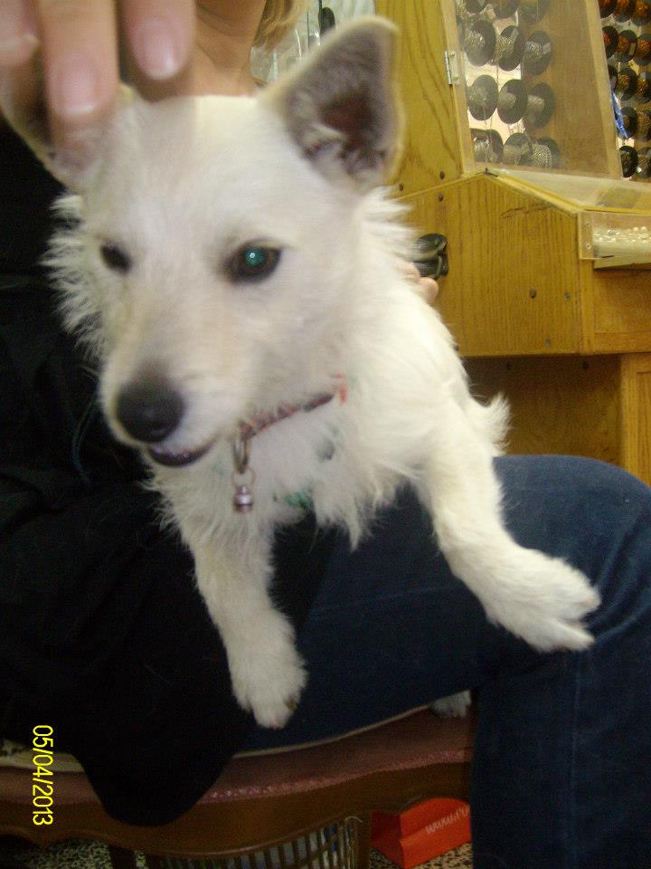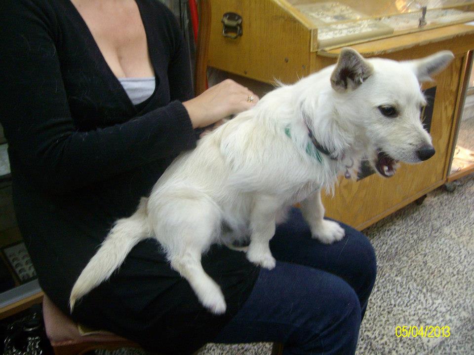 El día 26 de abril, cuando fuimos a visitar la perrera, Renée decidió llevarse con ella este perrito flacucho y simpático.